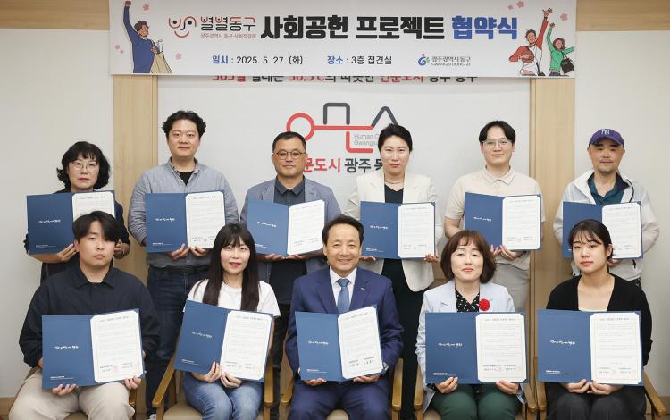 ±¤ÁÖ µ¿±¸(ûÀå ÀÓÅÃ)´Â Áö³ 27ÀÏ µ¿±¸Ã» Á¢°ß½Ç¿¡¼ ¡®º°º°µ¿±¸ »çȸ°øÇå ÇÁ·ÎÁ§Æ® Çù¾à½Ä¡¯À» °®°í Áö¿ª »çȸÀû °æÁ¦ ±â¾÷µé°ú Áö¼Ó°¡´ÉÇÑ ¹ßÀü(SDGs)À» À§ÇÑ Çù·Â ¸ðµ¨À» ¸¸µé¾î °¡±â·Î Çß´Ù°í ¹àÇû´Ù.