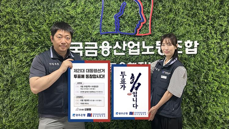 ±¤ÁÖÀºÇà ³ëµ¿Á¶ÇÕÀÌ Á¦21´ë ´ëÅë·É ¼±°Å ÅõÇ¥À²À» ³ôÀ̱â À§ÇØ ÀÓÁ÷¿øÀ» ´ë»óÀ¸·Î ¼±°Å Âü¿© Ä·ÆäÀÎÀ» Àû±Ø ÆîÄ¡°í ÀÖ´Ù.