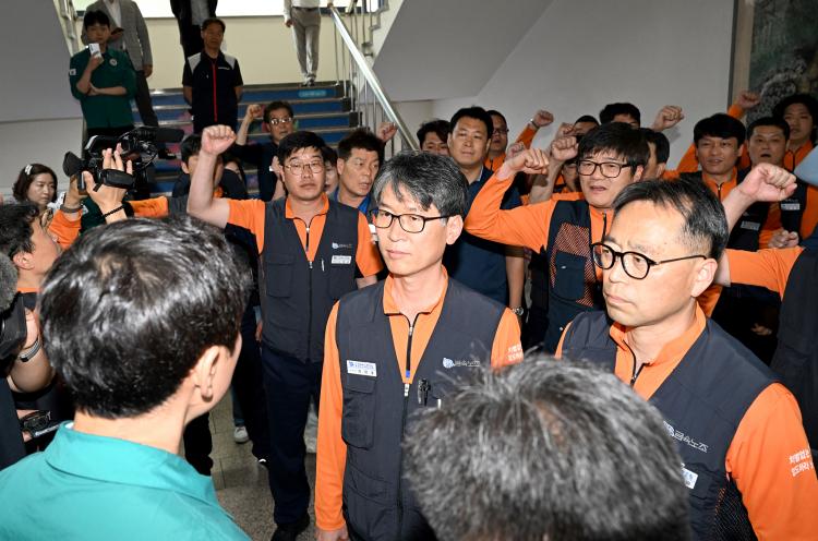 ¹Ú ûÀåÀº ¡°ÈÀç ¹ß»ý 12ÀϰÀε¥ ¿ÀÈ÷·Á ³ëÁ¶°¡ ¸ÕÀú ³ëÁ¶¿ø °í¿ë ¾ÈÁ¤°ú »ýȰ ´ëÃ¥ÀÌ ¹«¾ùÀÎÁö ÀÔÀåÀ» ³»³õ¾Æ¾ß ÇÑ´Ù¡±¸ç ¡°³ëÁ¶°¡ ½Ã¹Î¿¡°Ô »ç°ú¸¦ ÇØ¾ßÇÑ´Ù¡±°í ¹àÇû´Ù.