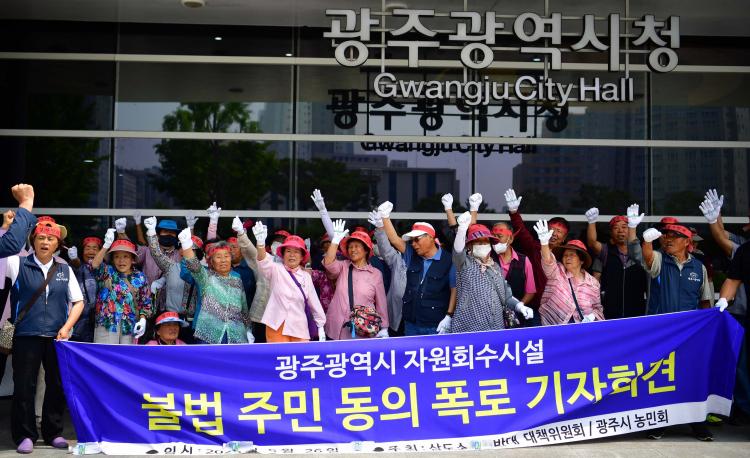 ±¤ÁÖ ±¤»ê±¸ »ïµµµ¿ ÀÚ¿øÈ¸¼ö½Ã¼³(¾²·¹±â¼Ò°¢Àå)À» ¹Ý´ëÇÏ´Â ÁֹεéÀÌ ÀÔÁö ¼±Á¤ °úÁ¤¿¡¼ ºÒ¹ý À§ÀåÀüÀÔÀÌ ÀÖ¾ú´Ù¸ç ¾öÁ¤ ¼ö»ç¸¦ Ã˱¸Çß´Ù.