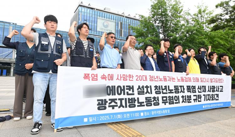 ±¤ÁÖ¡¤Àü³² ³ëµ¿´ÜüµéÀÌ Áö³ÇØ Æø¿° ¼Ó¿¡¼ ¼ûÁø 20´ë ¿¡¾îÄÁ ¼³Ä¡ ±â»ç »êÀç »ç°í¿Í °ü·Ã, ¿ø¡¤ÇÏû¿¡ ¹«ÇøÀÇ Ã³ºÐÇÑ ³ëµ¿ ´ç±¹À» ºñÆÇÇß´Ù.