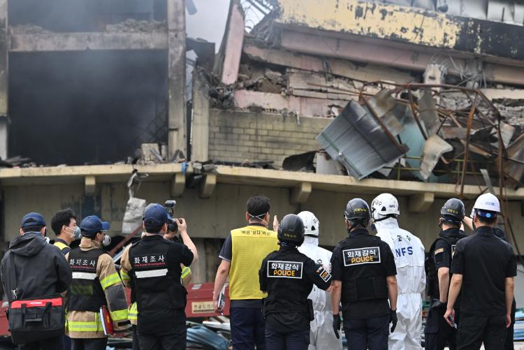 ±ÝȣŸÀÌ¾î ±¤ÁÖ°øÀå ÈÀç »ç°í¸¦ ¼ö»çÇÏ´Â °æÂûÀÌ °øÀå ÃøÀÇ ÈÀç Ãʱ⠴ëÀÀÀÌ ÀûÀýÇß´ÂÁö »ìÇDZâ À§ÇØ °øÀå °ü·ÃÀڵ鿡 ´ëÇÑ Á¶»ç¸¦ ¹úÀ̰í ÀÖ´Ù.