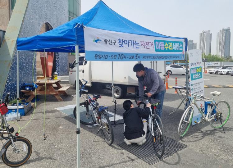 ±¤ÁÖ ±¤»ê±¸(±¸Ã»Àå ¹Úº´±Ô)°¡ ã¾Æ°¡´Â ÀÚÀü°Å À̵¿¼ö¸® ¼ºñ½º¸¦ ¿î¿µÇÑ´Ù. ã¾Æ°¡´Â ÀÚÀü°Å À̵¿¼ö¸® ¼ºñ½º´Â ÀÚÀü°Å ¼ö¸®½Ã¼³ÀÌ ºÎÁ·ÇØ ¹ß»ýÇÏ´Â ½Ã¹Î ºÒÆíÀ» ÇØ¼ÒÇϰí, ÀÚÀü°Å ÀÌ¿ë Ȱ¼ºÈ¸¦ À§ÇØ ¸¶·ÃµÆ´Ù.