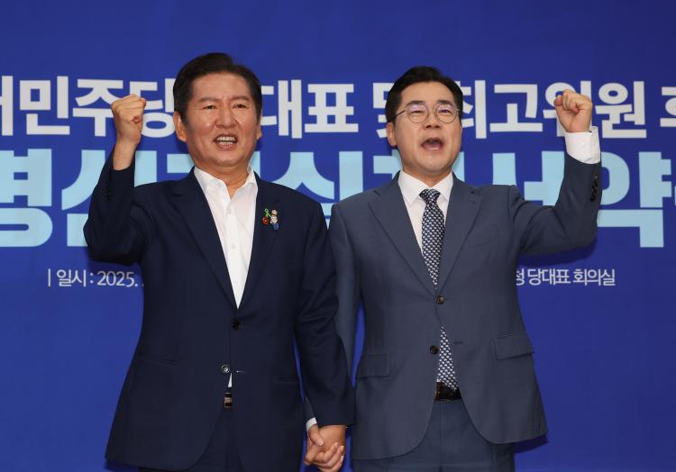 Á¤Ã»·¡¡¤¹ÚÂù´ë ´ç´ëÇ¥ Èĺ¸(±âÈ£¼ø)¿Í Ȳ¸í¼± ÃÖ°íÀ§¿ø È帴 15ÀÏ ±¹È¸¿¡¼ ¿¸° ¡®°ø¸í¼±°Å ½Çõ ¼¾à½Ä¡¯¿¡ Âü¼®ÇØ ¼¾à¼¿¡ ¼¸íÇß´Ù.