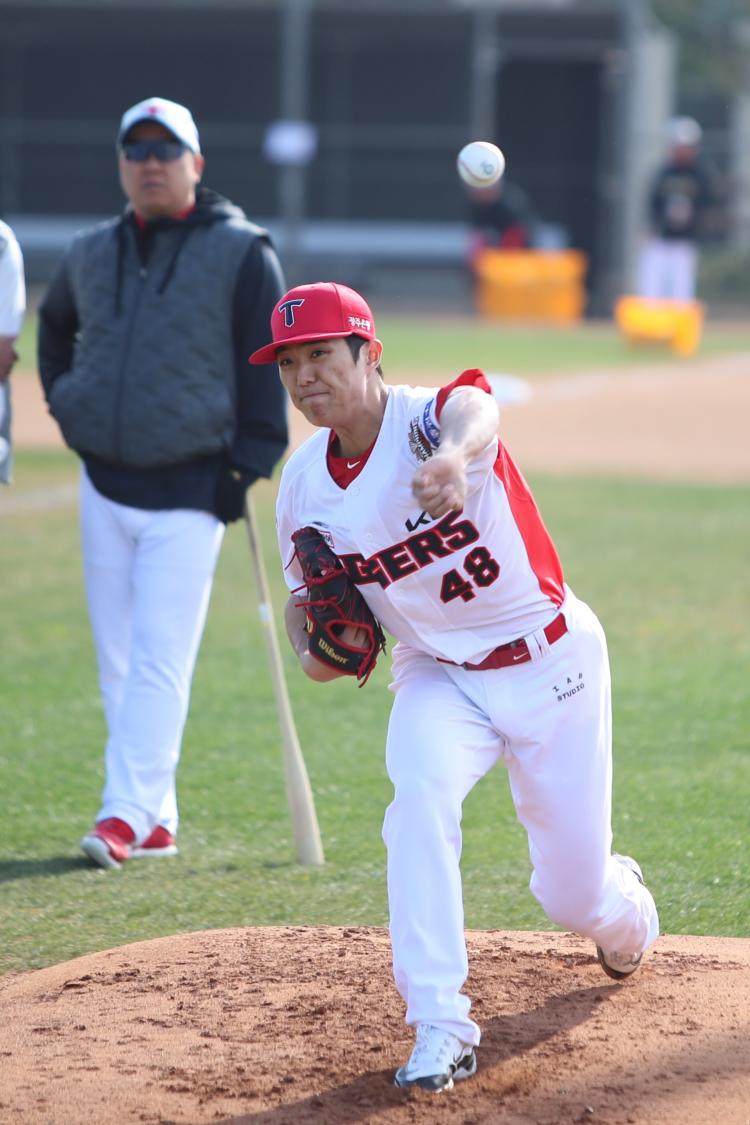 ÇÁ·Î¾ß±¸ KIA ŸÀ̰ÅÁîÀÇ ¿Þ¼Õ ¼±¹ß Åõ¼ö ÀÌÀǸ®°¡ ¿À·£ ÀçȰ ³¡¿¡ º¹±Í¸¦ ´«¾Õ¿¡ µ×´Ù. ±×°¡ ÈĹݱ⿡ ÆÀÀÇ ¡®È÷µçÄ«µå¡¯°¡ µÉ ¼ö ÀÖÀ»Áö °ü½ÉÀ» ¸ðÀº´Ù.
