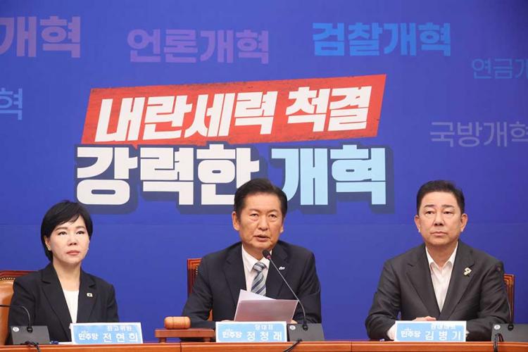 Á¤ ´ëÇ¥´Â ¡°°ËÂû¡¤¾ð·Ð¡¤»ç¹ý°³ÇõÀº ÆøÇ³Ã³·³ ¸ô¾ÆÃļ Àü±¤¼®Èó·³ ³¡³»°Ú´Ù¡±¸ç ¡°3´ë °³Çõ ¸ðµÎ °³ÇõÀÇ ¹æÇâ°ú ³»¿ëÀÌ ÀÌ¹Ì ±¸¼ºµÅ ÀÖ°í À±¼®¿ °ËÂû µ¶Àç Á¤±Ç°ú ³»¶õ »çŸ¦ °ÞÀ¸¸é¼ ±¹¹ÎÀÇ °ø°¨´ë°¡ Çü¼ºµÅ Àֱ⠶§¹®¿¡ ƯÀ§¿¡¼ Á¾ÇÕÀûÀÎ °³ÇõÀÇ ¹æÇâÀ» Àâ°í ÁøÇàÇÑ´Ù¸é ±¹¹Îµé²² ¾à¼Óµå¸° ¡®Ãß¼® Àü ¿Ï¼ö¡¯¶ó´Â ½Ã°£ ¾È¿¡ ¿Ï¼öÇÒ ¼ö ÀÖÀ» °Í¡±À̶ó°í Çß´Ù.