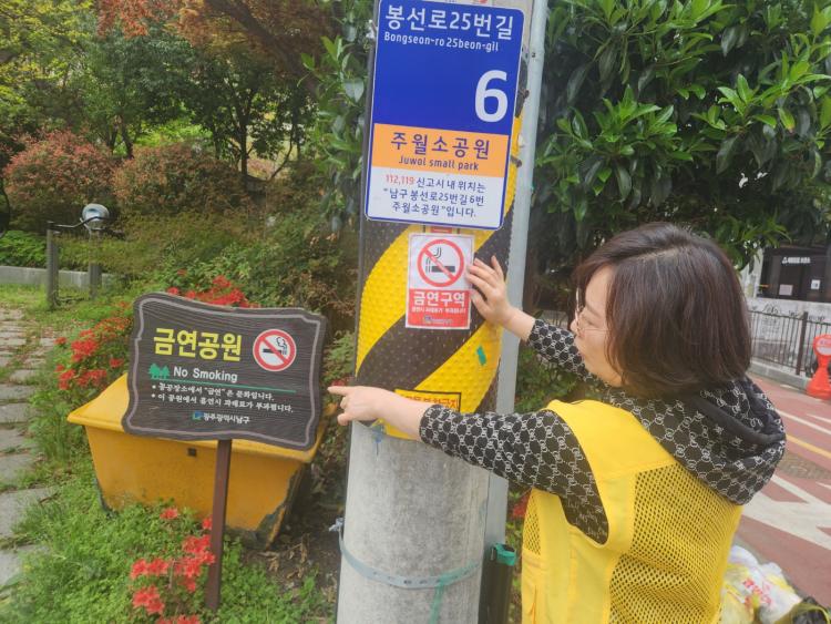 ±¤ÁÖ ³²±¸(±¸Ã»Àå ±èº´³»)´Â µµ½Ã°ø¿ø ³»¿¡¼ Èí¿¬À¸·Î ÀÎÇÑ ÇÇÇØ¸¦ ¿¹¹æÇϱâ À§ÇØ 8¿ù ÇÑ´Þ°£ ±Ý¿¬Ç¥ÁöÆÇ ½Ã¼³ Á¤ºñ ¹× Èí¿¬ ÇàÀ§ Á¡°Ë¿¡ ³ª¼±´Ù.