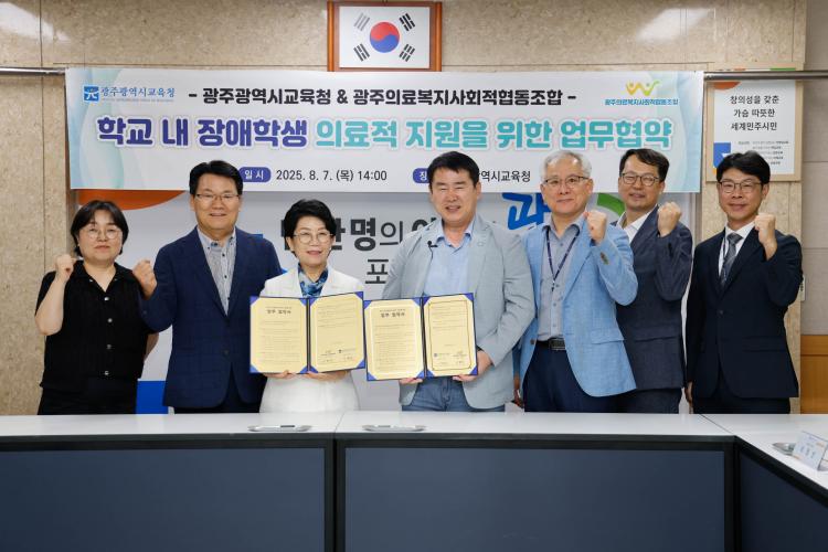 ½Ã±³À°Ã»°ú ±¤ÁÖÀǷẹÁö»çȸÀûÇùµ¿Á¶ÇÕÀº 7ÀÏ º»Ã» »óȲ½Ç¿¡¼ ÀÌÁ¤¼± ±³À°°¨, ÀÌÇý¼÷ ±¤ÁÖÀǷẹÁö»çȸÀûÇùµ¿Á¶ÇÕ ÀÌ»çÀåÀÌ Âü¼®ÇÑ °¡¿îµ¥ ¡®Çб³ ³» Àå¾ÖÇлý ÀÇ·áÀû Áö¿øÀ» À§ÇÑ ¾÷¹«Çù¾à¡¯À» ü°áÇß´Ù.