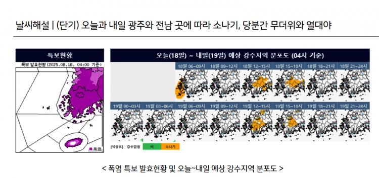 ±¤ÁÖ¿Í Àü³²Áö¿ª¿¡ ¹«´õÀ§°¡ Áö¼ÓµÇ°í ÀÖ´Â °¡¿îµ¥ ÀϺΠÁö¿ª¿¡ ¼Ò³ª±â°¡ ³»¸®°Ú´Ù.
