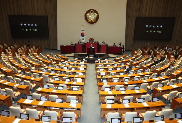 ¹ÎÁÖ´ç ÀÇ¿øµéÀº ÃÖ ÀÇ¿ø Åä·Ð ½ÃÀÛ Á÷ÈÄ ´ëºÎºÐ º»È¸Àå¿¡¼ ÅðÀåÇß´Ù. ÁöµµºÎµµ ¾à 2ºÐ ¸¸ÀÎ 10½Ã 43ºÐ¿¡ ¹«Á¦ÇÑ Åä·Ð Á¾°á µ¿ÀǾÈÀ» Á¦ÃâÇß´Ù. Çʸ®¹ö½ºÅÍ ½ÃÀÛ 24½Ã°£ÀÌ Áö³ª¸é Á¾°á µ¿ÀǾȿ¡ ´ëÇÑ ¹«±â¸í ÅõÇ¥¸¦ ÁøÇàÇÒ ¼ö ÀÖ´Ù. ¹ü¿©±ÇÀÌ ÀçÀû 5ºÐÀÇ 3(180¼®) ÀǼ®À» È®º¸Çϰí ÀÖ¾î 22ÀÏ ¿ÀÀü Áß Åä·ÐÀ» °Á¦ Á¾·áÇÒ ¼ö ÀÖ°í, EBS¹ýÀº Ç¥°á¿¡ ºÎÃÄÁø´Ù.