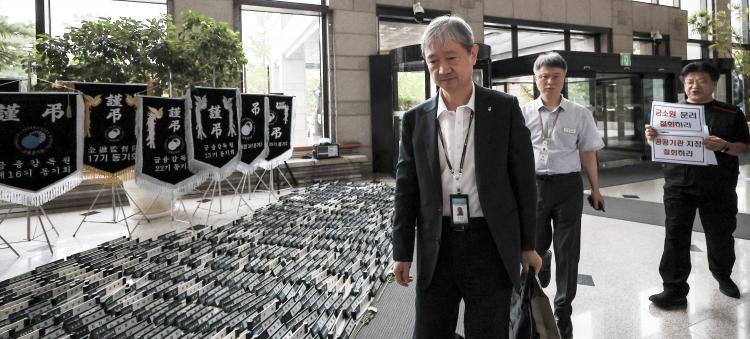 ±Ý°¨¿ø ³ëÁ¶´Â Á¤ºÎÀÇ Á¶Á÷°³ÆíÀÌ È®Á¤µÈ µÚ ºñ»ó´ëÃ¥À§¿øÈ¸¸¦ ±¸¼ºÇÏ°í ³ªÈê° º»¿ø 1Ãþ ·Îºñ¿¡¼ ¡®±ÝÀ¶°¨µ¶Ã¼°è °³Æí ¹Ý´ë¡¯ ½ÃÀ§¸¦ ÁøÇà ÁßÀÌ´Ù. ³ëÁ¶ ºñ´ëÀ§´Â ±ÝÀ¶³ëÁ¶ µî°úÀÇ ¿¬´ë µîÀ» °ËÅäÇϰí ÀÖÀ¸¸ç, ÃÑÆÄ¾÷µµ ºÒ»çÇÑ´Ù´Â ÀÔÀåÀÌ´Ù. Áö±Ý±îÁö Á¶¿ëÇß´ø ±ÝÀ¶À§ Á÷¿øµéµµ īī¿ÀÅå ¿ÀÇÂäÆÃ¹æÀ» °³¼³Çϰí, ¼º¸í¼ µî ´ÜüÇൿÀ» ÁغñÇϰí ÀÖ´Â °ÍÀ¸·Î ÀüÇØÁ³´Ù.