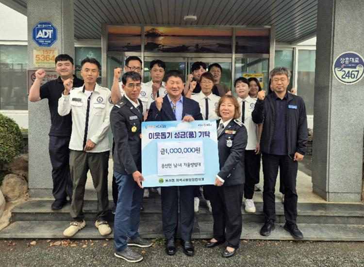 ÀåÈﱺ ¿ë»ê¸é ³²³à ÀÚÀ²¹æ¹ü´ë(´ëÀå ¹é°èÇö, ±èÀº¹Ì)°¡ Áö¿ª»çȸ ÀÌ¿ôÀ» À§ÇÑ µû¶æÇÑ ¸¶À½À» ÀüÇϸç 100¸¸ ¿øÀ» ±âºÎÇß´Ù.