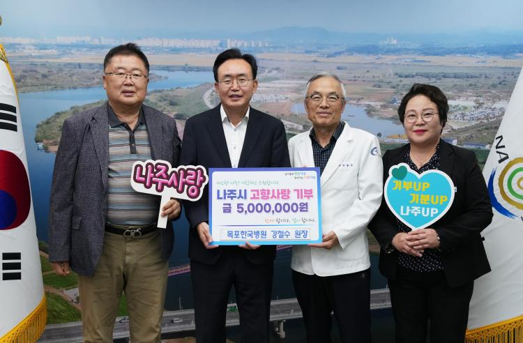 ³ªÁÖ½Ã(½ÃÀå À±º´ÅÂ)´Â 22ÀÏ ¸ñÆ÷Çѱ¹º´¿ø °Ã¶¼ö ¿øÀå(¿À¸¥ÂÊ µÎ ¹øÂ°)ÀÌ Áö¿ª»çȸ ¹ßÀüÀ» À§ÇØ °íÇâ»ç¶û±âºÎ±Ý 500¸¸ ¿øÀ» ±âŹÇß´Ù°í ¹àÇû´Ù.