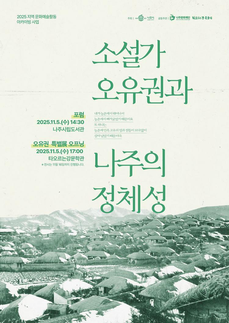 ³ªÁÖ¹®ÈÀç´Ü(ÀÌ»çÀå À±º´ÅÂ)Àº ¿À´Â 11¿ù 5ÀÏ ³ªÁֽø³µµ¼°ü°ú Ÿ¿À¸£´Â°¹®Çаü ÀÏ´ë¿¡¼ ¡®¼Ò¼³°¡ ¿ÀÀ¯±Ç°ú ³ªÁÖÀÇ Á¤Ã¼¼º¡¯À» ÁÖÁ¦·Î Æ÷·³, Àü½Ã, ¹®ÇÐ Åõ¾î¸¦ °³ÃÖÇÑ´Ù°í 27ÀÏ ¹àÇû´Ù.