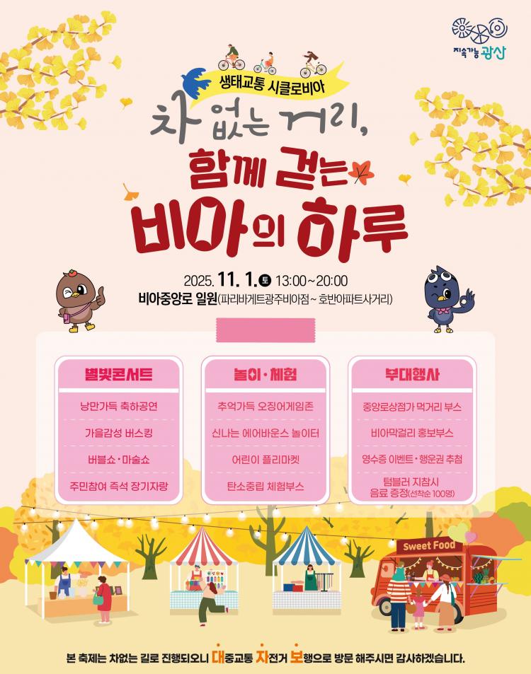 ±¤ÁÖ ±¤»ê±¸ ºñ¾Æµ¿(µ¿Àå Àå¿ë¼º)ÀÌ 11¿ù 1ÀÏ ÁֹεéÀÌ Á÷Á¢ ¸¸µç ģȯ°æÃàÁ¦ ¡®»ýű³Åë ½ÃŬ·Îºñ¾Æ-Â÷ ¾ø´Â °Å¸®, ÇÔ²² °È´Â ºñ¾ÆÀÇ ÇϷ硯¸¦ ¿¬´Ù.