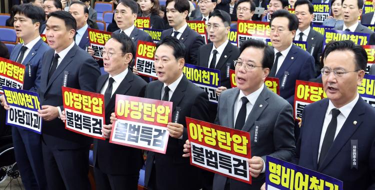 ÃÖ ¼ö¼®´ëº¯ÀÎÀº ¡°¡¯ÇùÄ¡¡¯¸¦ ¸»Çϸ鼵µ ±¹È¸¿¡¼´Â ¿©´ç ÀǼ®¼ö¸¦ ¾Õ¼¼¿î ÀϹæÅëÇàÀ» °íÁýÇϰí, Ư°Ë°ú °æÂû ¼ö»ç¸¦ µ¿¿øÇØ ¾ß´çÀ» ÀûÆó·Î ¸ô¾ÆºÙÀÌ´Â ÈÀü¾ç¸é¼ú Á¤Ä¡°¡ À̾îÁö°í ÀÖ´Ù¡±¸ç ¡°Æ÷ǽ¸®Áò ¿¹»ê°ú ±Ç·Â Àå¾ÇÀ» À§ÇÑ ½Ãµµ¸¦ Áï½Ã Áß´ÜÇ϶ó. ±¹¹ÎÀÇÈûÀº ´ëÇѹα¹ÀÇ °ÇÀüÇÑ ÀçÁ¤°ú Áö¼Ó°¡´ÉÇÑ ¼ºÀåÀ» Áö۱â À§ÇØ ³¡±îÁö ½Î¿ì°Ú´Ù¡±°í ¹àÇû´Ù.