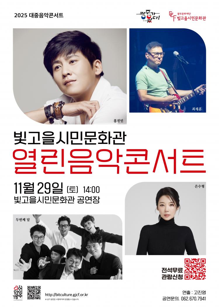 ±¤ÁÖ¹®ÈÀç´ÜÀº ¿À´Â 29ÀÏ(Åä) ºû°íÀ»½Ã¹Î¹®È°ü °ø¿¬Àå¿¡¼ ¡®2025 ´ëÁßÀ½¾ÇÄܼƮ(2ȸÂ÷)¡¯¸¦ Àü¼® ¹«·á·Î °³ÃÖÇÑ´Ù°í ¹àÇû´Ù. À̹ø °ø¿¬Àº ½Ã¹Î ¹®Èº¹Áö ½ÇÇö°ú ¹®È Á¢±Ù¼º È®´ë¸¦ À§ÇÑ ¿¸° À½¾Çȸ·Î, Áö¿ª¹Î ´©±¸³ª ºÎ´ã ¾øÀÌ Âü¿©ÇÒ ¼ö ÀÖ´Â °ø°ø±âȹ °ø¿¬ÀÌ´Ù.