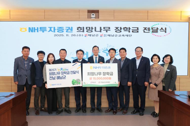 ¸íÇö°ü ±º¼ö´Â¡°NHÅõÀÚÁõ±ÇÀÇ Áö¿ª ÀÎÀç ¾ç¼ºÀ» À§ÇÑ °ü½É°ú Áö¿ø¿¡ Áø½ÉÀ¸·Î °¨»çµå¸°´Ù¡±¸ç¡°À̹ø¿¡ Àü´Þ¹ÞÀº ÀåÇбÝÀ» ÅëÇØ ¾î·Á¿î ȯ°æ ¼Ó¿¡¼µµ Çо÷¿¡ Á¤ÁøÇÏ´Â ¿ì¸® ÇØ³²±º Çлýµé¿¡°Ô Å« ÈûÀÌ µÇ°í, ¹Ì·¡¸¦ ÇâÇÑ Èñ¸ÁÀÇ ¾¾¾ÑÀÌ µÉ °ÍÀÌ´Ù¡±°í ÀüÇß´Ù.