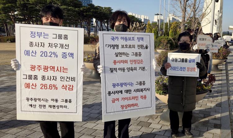±¤Á־Ƶ¿Ã»¼Ò³â±×·ìȨ Á¾»çÀÚµéÀÌ Á¤ºÎÀÇ Áö¿ø¿¹»ê Àλ󿡵µ ºÒ±¸, ±¤Áֽô ¿ÀÈ÷·Á »è°¨Çß´Ù¸ç ¹Ý¹ßÇÏ°í ³ª¼¹´Ù.