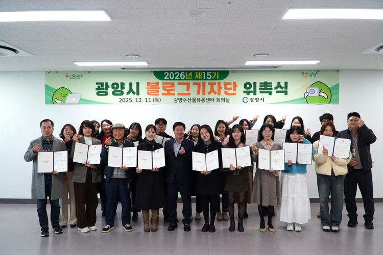 ±¤¾ç½Ã´Â Áö³ 11ÀÏ ±¤¾ç½Ã¼ö»ê¹°À¯Åë¼¾ÅÍ¿¡¼ Á¦15±â ºí·Î±×±âÀÚ´Ü À§Ã˽ÄÀ» °³ÃÖÇϰí, Áö¿ªÀÇ ´Ù¾çÇÑ ¼Ò½ÄÀ» ½Ã¹Î ´«³ôÀÌ¿¡¼ »ý»ýÇÏ°Ô Àü´ÞÇÒ ±âÀÚ´Ü 20¸íÀ» °ø½Ä À§ÃËÇß´Ù°í ¹àÇû´Ù.