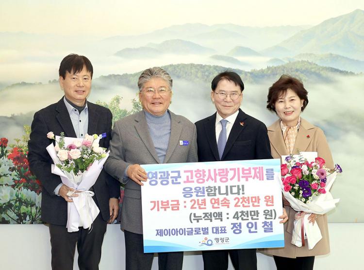 Á¦À̾ÆÀ̱۷ιú Á¤ÀÎö ´ëÇ¥°¡ Áö³ 8ÀÏ ¿µ±¤±º¿¡ °íÇâ»ç¶û±âºÎ±Ý ÃÖ°í¾×ÀÎ 2000¸¸ ¿øÀ» ±âŹÇß´Ù. Á¤ÀÎö ´ëÇ¥´Â Áö³ÇØ¿¡ ÀÌ¾î ¿ÃÇØµµ µ¿ÀÏ ±Ý¾×À» ±âºÎÇϸç, 2³â ¿¬¼Ó °íÇâ»ç¶û±âºÎ±Ý ÃÖ°í¾× ±âŹÀÚ·Î À̸§À» ¿Ã·È°í, ´©Àû ±âºÎ±Ý¾×Àº ÃÑ 4000¸¸ ¿øÀÌ´Ù.