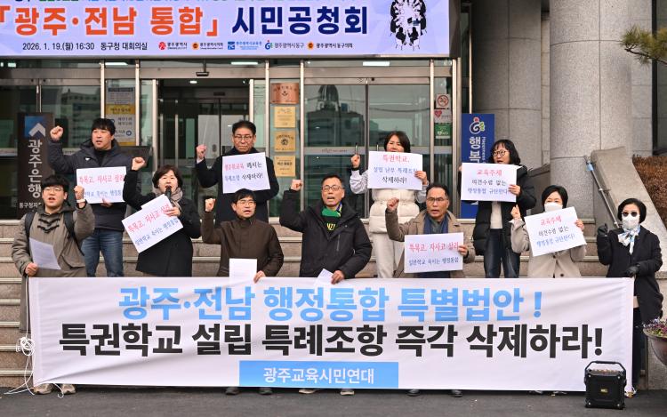 ±¤ÁÖ±³À°½Ã¹Î¿¬´ë°¡ 19ÀÏ ±¤ÁÖ¡¤Àü³² ÇàÁ¤ÅëÇÕ Æ¯º°¹ý¾ÈÀÌ Æ¯±Ç±³À°À» ºÎÃß±â°í Áö¿ª °£ ±³À° ºÒ±ÕÇüÀ» ÃÊ·¡ÇÒ ¼ö ÀÖ´Ù¸ç »èÁ¦¸¦ ¿ä±¸Çß´Ù.