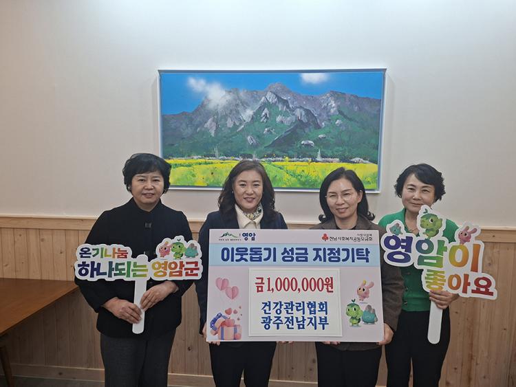 Çѱ¹°Ç°°ü¸®Çùȸ ±¤ÁÖÀü³²ÁöºÎ´Â Áö³ 5ÀÏ ¿µ¾Ï±ºÃ»À» ¹æ¹®ÇØ Áö¿ª ÁÖ¹ÎÀÇ º¹Áö ÁõÁø°ú °Ç°ÇÑ »ýȰ ȯ°æ Á¶¼ºÀ» À§ÇÑ »çȸ°øÇå ÈÄ¿ø±ÝÀ» Àü´ÞÇß´Ù.