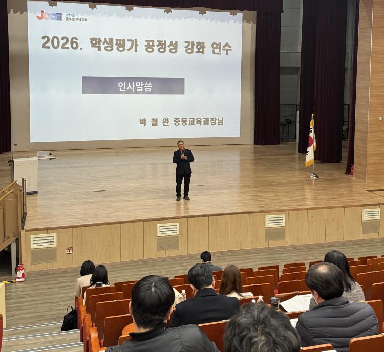 Àü¶ó³²µµ±³À°Ã»(±³À°°¨ ±è´ëÁß)Àº 2026Çг⵵ 1Çб⸦ ¾ÕµÎ°í °íµîÇб³ ÇлýÆò°¡ °øÁ¤¼º °È¸¦ À§ÇÑ ¿¬¼ö¸¦ ¿î¿µÇÑ´Ù. À̹ø ¿¬¼ö´Â 2026³âÀ» ¡®ÇлýÆò°¡ ¼±µµ±³À°Ã» µµ¾àÀÇ ÇØ¡¯·Î Á¤ÇÏ°í Æò°¡ÀÇ °øÁ¤¼º°ú Àü¹®¼º °È¸¦ ÃßÁøÇÏ´Â Á¤Ã¥ ¹æÇâ¿¡ µû¶ó ¸¶·ÃµÆ´Ù.