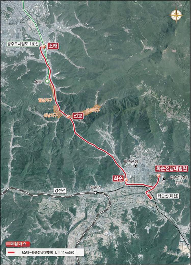 ±¤ÁÖ~ȼø ±¤¿ªÃ¶µµ´Â ÃÑ °Å¸® 11.58§°·Î ¿îÇ౸°£Àº ¼ÒÅÂ~¼±±³~ȼø~ȼøÀü³²´ëº´¿øÀÌ´Ù. ¿¹»êÀº 4600¾ï¿øÀÌ ¼Ò¿äµÉ °ÍÀ¸·Î ÃßÁ¤µÇ¸ç ±¹°¡»ç¾÷À¸·Î È®Á¤µÉ °æ¿ì Áö¹æºñ ºÎ´ã·üÀº 30%´Ù.