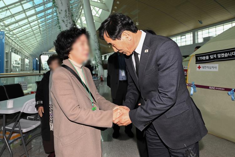 Àü¼ºÈ¯ ´ëÅë·Éºñ¼½Ç °æÃ»ÅëÇÕ¼ö¼®ÀÌ 12¡¤29 Á¦ÁÖÇ×°ø Âü»ç Ãʱâ Á¤ºÎÀÇ ¼ö½À ºÎ½Ç Ã¥ÀÓÀ» ÀÎÁ¤ÇÏ¸é¼ À¯°¡Á·¿¡°Ô À§·Î¸¦ °Ç³Þ´Ù.
