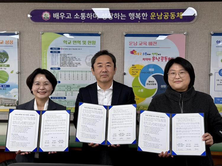 ±¤ÁÖ ±¤»ê±¸ ¿î³²µ¿(µ¿Àå ±èÁ¤¾Æ)ÀÌ Áö³ 23ÀÏ ¿î³²ÃʵîÇб³¿¡¼ ¡®°ñ¸ñ´ëÀå ¾ÈÀü ÇÁ·ÎÁ§Æ®¡¯ ÃßÁøÀ» À§ÇÑ ¹Î¡¤°ü¡¤ÇÐ ¾÷¹«Çù¾àÀ» ü°áÇß´Ù°í ¹àÇû´Ù.