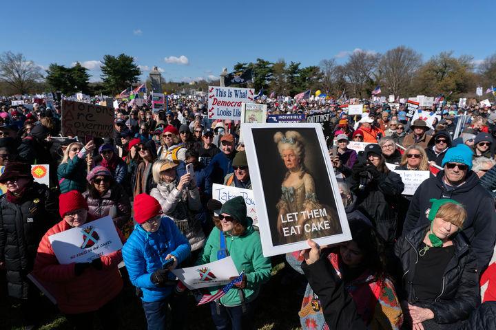 28ÀÏ(ÇöÁö ½Ã°£) ¹Ì±¹ ¿ö½ÌÅÏ¿¡¼ ¡®³ë Å·½º¡¯(No Kings) ½ÃÀ§ Âü°¡ÀÚµéÀÌ ¸Þ¸ð¸®¾ó ºê¸®Áö¸¦ °Ç³Ê±â Àü Áýȸ¸¦ Çϰí ÀÖ´Ù. À̳¯ ¹Ì±¹ Àü¿ª¿¡¼ µµ³Îµå Æ®·³ÇÁ ´ëÅë·ÉÀÇ À̶õ ÀüÀï¿¡ ¹Ý´ëÇÏ´Â ´ë±Ô¸ð ¡®³ë Å·½º¡¯ ½ÃÀ§°¡ ¿·È´Ù.