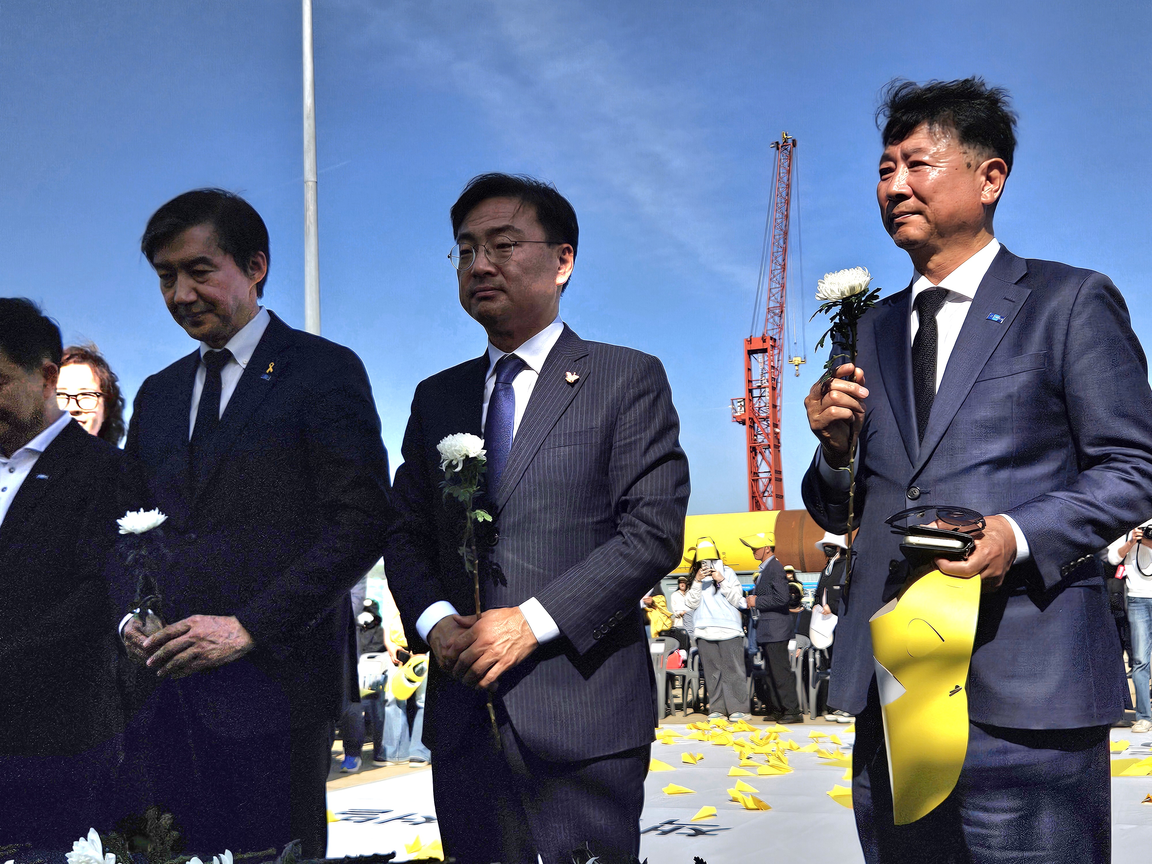 ÇÑÆí, ¹Ú È帴 Áö³ 16ÀÏ ¸ñÆ÷ ½ÅÇ׿¡¼ ¿¸° ¼¼¿ùÈ£ Âü»ç 12Áֱ⠱â¾ï½Ä¿¡ Âü¼®ÇØ À¯°¡Á·À» À§·ÎÇß´Ù. ±×´Â ÀÌ ÀÚ¸®¿¡¼ "¾ÆÇ °ú°Å¸¦ ¹Ýº¹ÇÏÁö ¾Ê°Ú´Ù"¸ç û¼Ò³â »ýÁ¸¼ö¿µ ±³À° Àǹ«È µî ½ÇÁúÀûÀÎ ¾ÈÀü ´ëÃ¥À» Á¤Ã¥È ÇÏ°Ú´Ù°í ¾à¼ÓÇß´Ù.