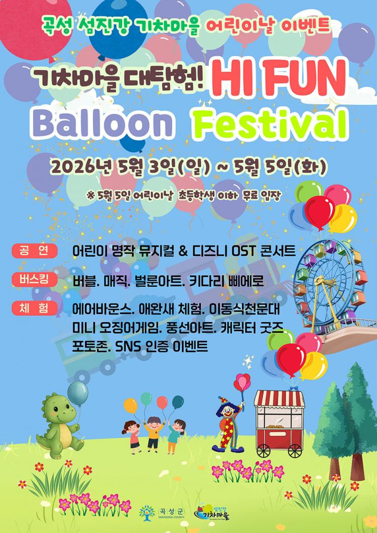 ±ºÀº ¿À´Â 5¿ù 2ÀϺÎÅÍ 3ÀϱîÁö µ¿ÈÁ¤¿ø¿¡¼ ¡®º½ÀÇ ¸á·Îµð¡¯ À½¾Çȸ¸¦ °³ÃÖÇϰí, À̾î 5¿ù 3ÀϺÎÅÍ 5ÀϱîÁö ¼¶Áø°±âÂ÷¸¶À» ÀÏ¿ø¿¡¼ ¾î¸°À̳¯ Ưº° À̺¥Æ® ¡®±âÂ÷¸¶À» ´ëŽÇè! Hi Fun Balloon Festival¡¯À» ¿î¿µÇÑ´Ù°í ¹àÇû´Ù.
