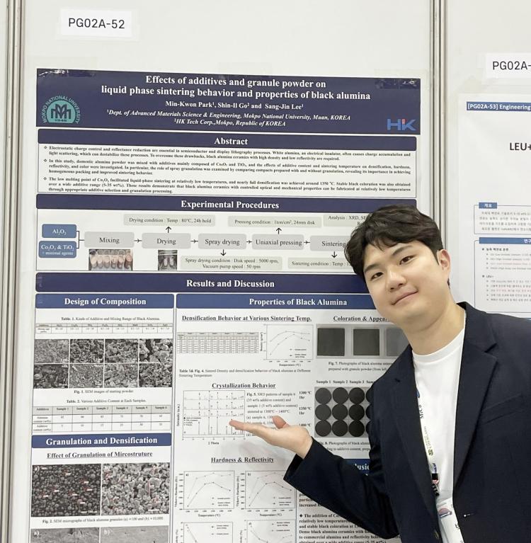 ¹Ú¹Î±Ç ÇлýÀº À̹ø Çмú´ëȸ¿¡¼ ¡®Effects of additives and granule powder on liquid phase sintering behavior and properties of black alumina¡¯¸¦ ÁÖÁ¦·Î ¿¬±¸¼º°ú¸¦ ¹ßÇ¥ÇßÀ¸¸ç, ÇØ´ç ³í¹®ÀÇ ¿ì¼ö¼ºÀ» ÀÎÁ¤¹Þ¾Æ ¼ö»óÀÇ ¿µ¿¹¸¦ ¾È¾Ò´Ù.